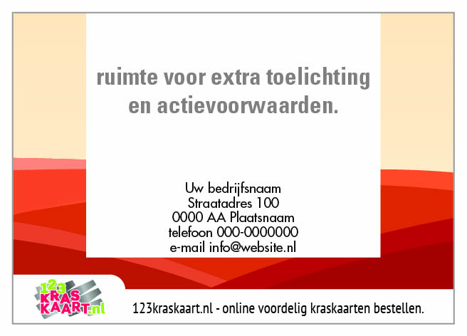 Jouw keuze is gevallen op dit ontwerp, wij gaan graag aan de slag om het jouw ontwerp te maken met eigen logo en teksten. Vul hiervoor de velden in en wij gaan direct voor je aan de slag en sturen je vooraf een proef van de kraskaart.